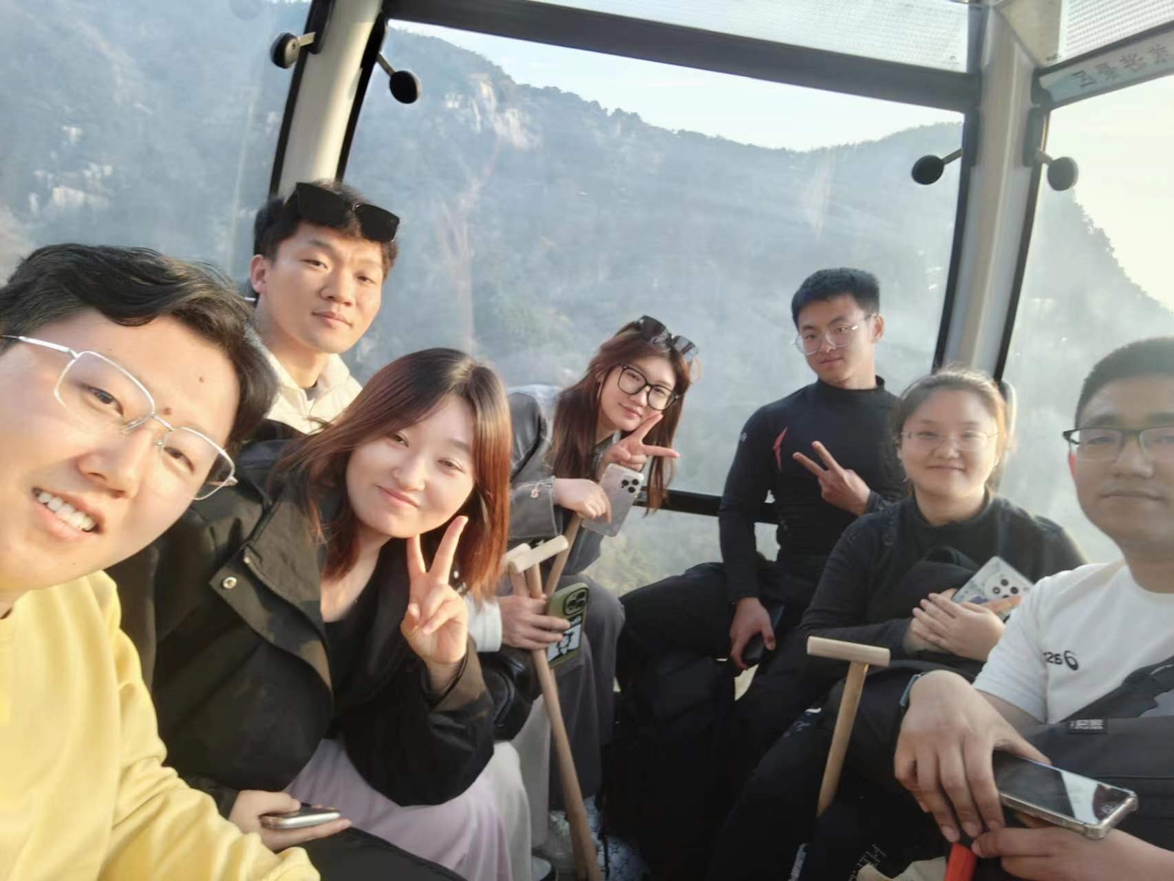 攀岳期間,大家從紅門出發(fā),沿經(jīng)典登山線路向上攀登。途經(jīng)中天門、云步橋等景點(diǎn)后,面對著名的“十八盤”陡峭臺階,大家相互鼓勵、分工協(xié)作:體力充沛的同事主動分擔(dān)行李。歷經(jīng)6小時(shí)跋涉,全員成功登頂南天門。下山時(shí),全員集中在索道上面對沿途的風(fēng)景合照。